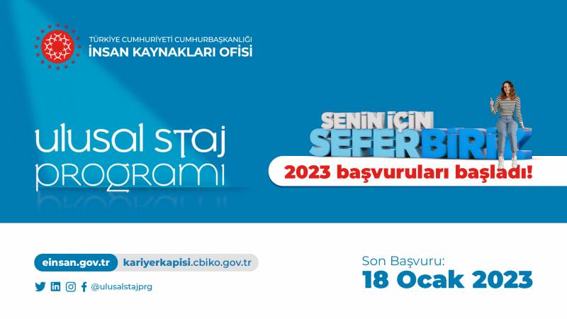Cumhurbaşkanlığı İnsan Kaynakları Ofisi tarafından hayata geçirilmiş olan Ulusal Staj Programı'nın 2023 başvuruları başlamıştır.