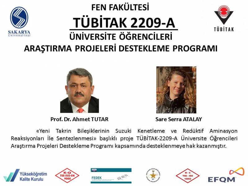 Fakültemiz Öğretim üyelerinden Prof. Dr. Ahmet TUTAR, Doç. Dr. Hatice TUNCA ve Araş. Gör. Yavuz DERİN'in 4 adet projesi TÜBİTAK-2209-A Üniversite Öğrencileri Araştırma Projesi kapsamında desteklenmeye hak kazanmıştır.