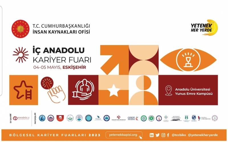 Değerli öğrenciler, 4-5 Mayıs tarihlerinde Türkiye Cumhuriyeti Cumhurbaşkanlığı İnsan Kaynakları Ofisi koordinasyonunda ve Anadolu Üniversitesi ev sahipliğinde Eskişehir'de düzenlenecek olan İç Anadolu Kariyer Fuarı'nda yüzlerce firma ile iş ve staj imkanları, mülakat simülasyonları, seminerler, workshoplar, teknik geziler ve daha birçok etkinlik sizi bekliyor. İç Anadolu Kariyer Fuarı'na katılmak için