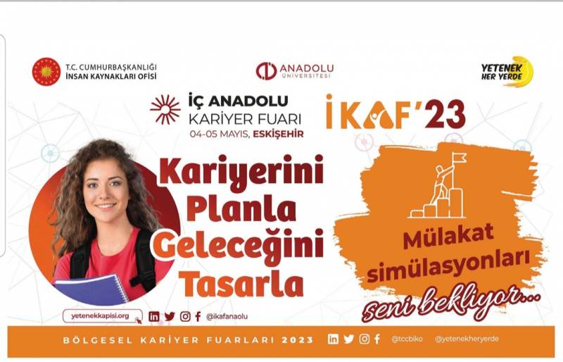 "Yetenek Her Yerde" teması ile Cumhurbaşkanlığı İnsan Kaynakları Ofisi Başkanlığı'nın koordinasyonunda düzenlenen İç Anadolu Bölgesel Kariyer Fuarı (İKAF'23), 04-05 Mayıs 2023 tarihlerinde Üniversitemiz ev sahipliğinde gerçekleşecektir.