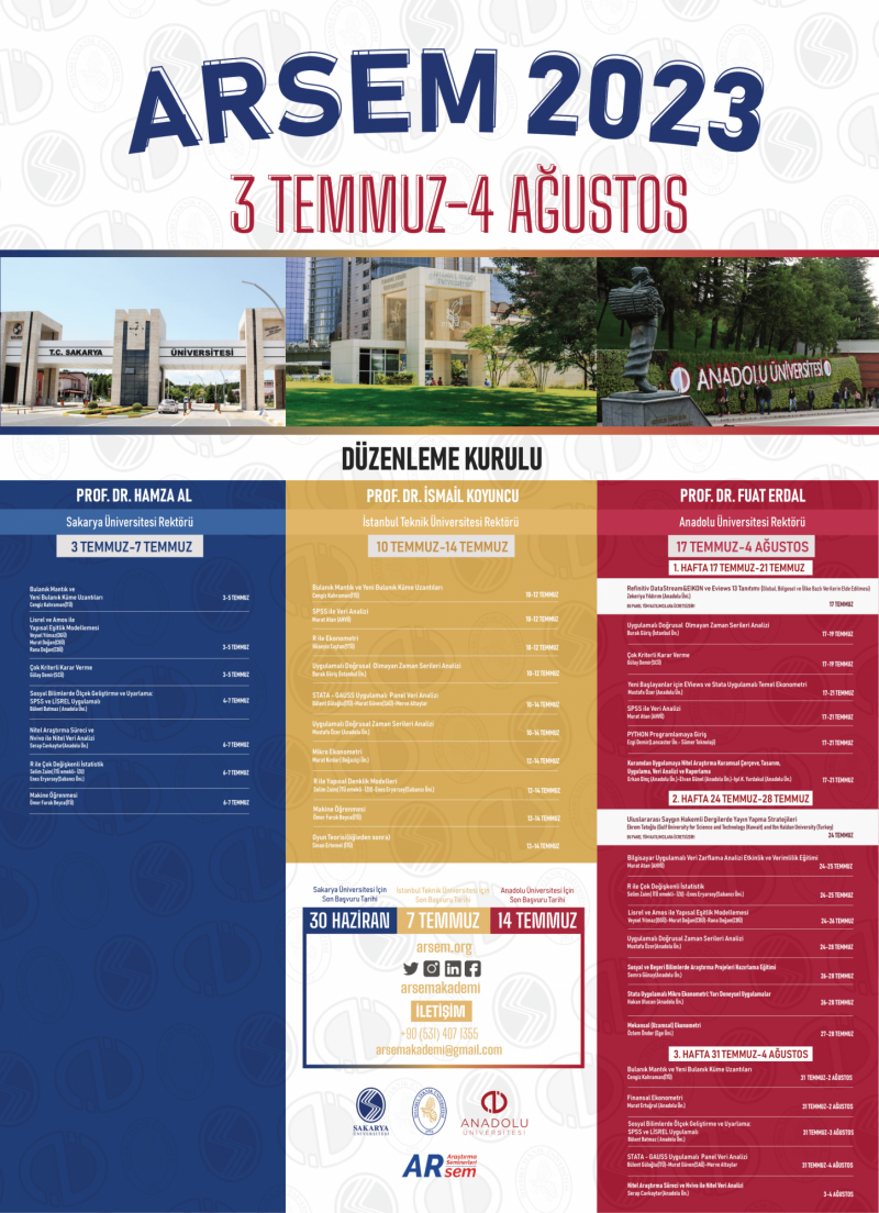 Üniversitemizdeki seminerlerde Sosyal Bilimlerde Ölçek Geliştirme ve Uyarlama: SPSS ve LİSREL Uygulamalı, Nitel Araştırma Süreci ve Nvivo ile Nitel Veri Analizi, Bulanık Mantık ve Yeni Bulanık Küme Uzantıları, R ile Çok Değişkenli İstatistik, Lisrel ve Amos ile Yapısal Eşitlik Modellemesi, Makine Öğrenmesi ve Çok Kriterli Karar Verme seminerleri alanında uzman öğretim üyeleri tarafında verilecektir.