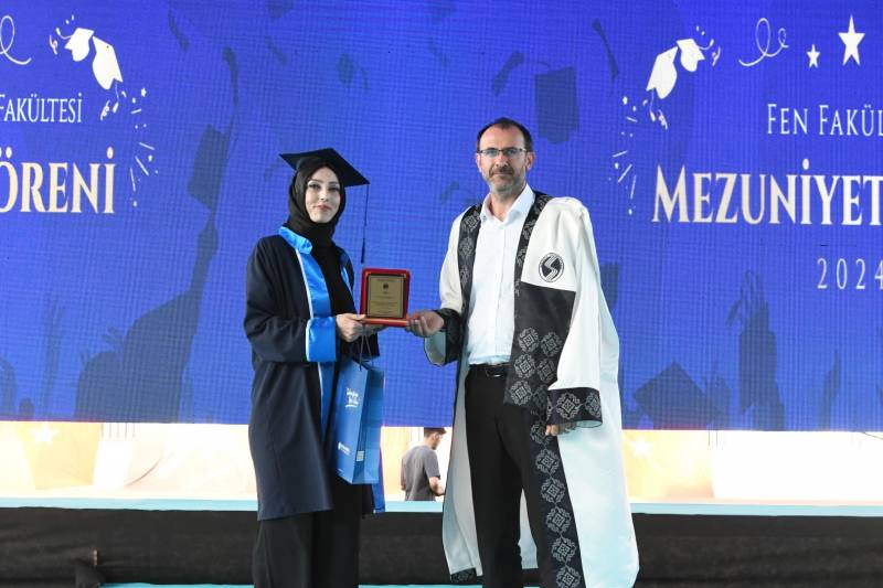 Fen Fakültesi Dekanımız Prof. Dr. İlkay ŞİŞMAN konuşmalarında “…. eminiz ki her biriniz, bundan sonraki hayatında dürüst, ahlaklı ve kendine güvenen bireyler olarak değerli hizmetlerde bulunacaksınız. Bu ülkeye, millete ve ailelerine karşı sorumluluklarının bilincinde olan bireyler olmanız temennisiyle yolunuz ve bahtınız açık olsun” dedi.