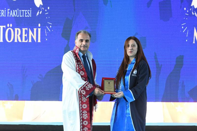 Protokol konuşmalarının ardından dereceye giren mezunlara belge ve hediyeleri takdim edildi.