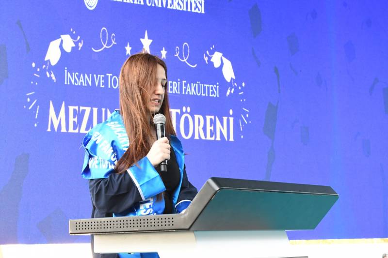 İnsan ve Toplum Bilimleri Fakültesi Dekanımız Prof. Dr. Erkan ATAK konuşmalarında “Sakarya Üniversitesi vizyon ve hedefleri doğrultusunda aldığınız eğitim ve tecrübelerle ne istediğini bilen, kendine güvenen, çağın gerekliliklerinin farkında olan ve fark yaratan birer birey olarak meslek hayatınıza başlayacaksınız. Bundan sonraki yaşamınızda dürüstlük, sorumluluk, doğruluk, güvenilirlik ve saygı gibi etik değerleri her zaman önceleyiniz. Meslek hayatınızda çalışkan olunuz.” İfadelerinde bulundu.