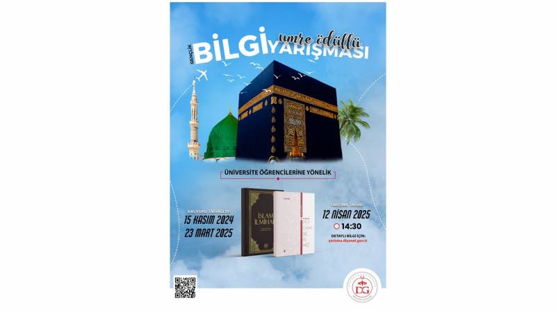 Diyanet İşleri Başkanlığınca, 12 Nisan 2025 Cumartesi günü üniversite öğrencileri arasında ülke genelinde "Umre Ödüllü Gençlik Bilgi Yarışması" düzenleneceği bildirilmiştir. Yarışmaya ilişkin Usul ve Esaslar ile Afiş ekli dosyalardadır. Öğrencilerimize duyurulur